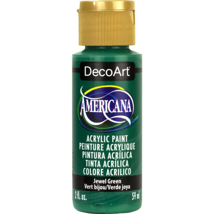Americana Acrylic Paints are premium, all-purpose, matte finish acrylic paints available at a budget friendly price. These paints deliver superior coverage with a permanent, durable finish. They are water- based and non-toxic and can be varnished to create various sheens. They are intermixable and suitable for use on almost any craft surface. The colors are highly pigmented with a smooth, creamy consistency and clean up easily with soap and water. How to Use Americana Acrylics: Shake well before using. Apply one well-brushed coat using a soft brush or sponge brush. Apply multiple coats when using more transparent colors. Allow to dry thoroughly before applying additional coats or varnishes.